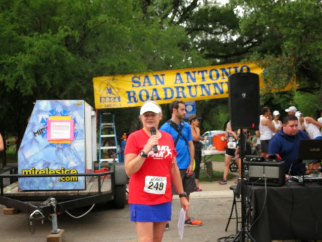 Normally, this is where I would apologize for taking on too much and post a ton of pictures from this past month and promise myself I could keep up next week or month. Not this time. Here's my ugly race picture and it is all - race director of the 35th Annual SARR Women's 5k. I ran more than a 5k back and forth to the start/finish.