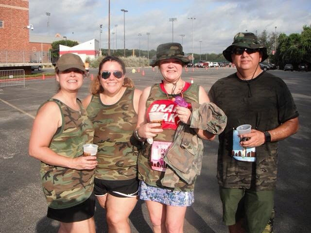 So, here's what last weekend looked like - among folding/distributing neighborhood newsletters, working overtime, and too much else. The Loteria 5k - or 'Mexican bingo.' Somos soldados for this one - mostly since we were all busy and cobbled together costumes by Thursday before the run. I actually found an old BDU blouse from my Army days - strangely, 1 rank and 2 units older than when I was discharged (honorably, after I'd served my time, and at my request!), so I'm not sure why I did not give that one away and still had it floating around my closet.
